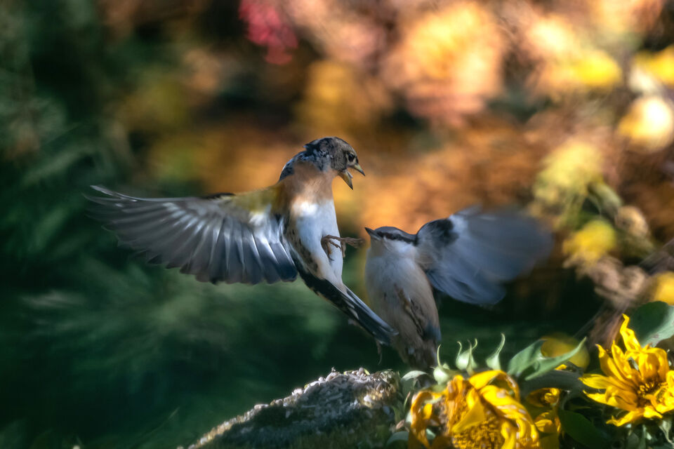 Eftersom jag gärna vill ha "något" eller fina färger i bakgrunden så passade det bra att bergfinkarna kom på besök några dagar då löven var som vackrast. De var inte många så det blev inte mycket ... läs mer..